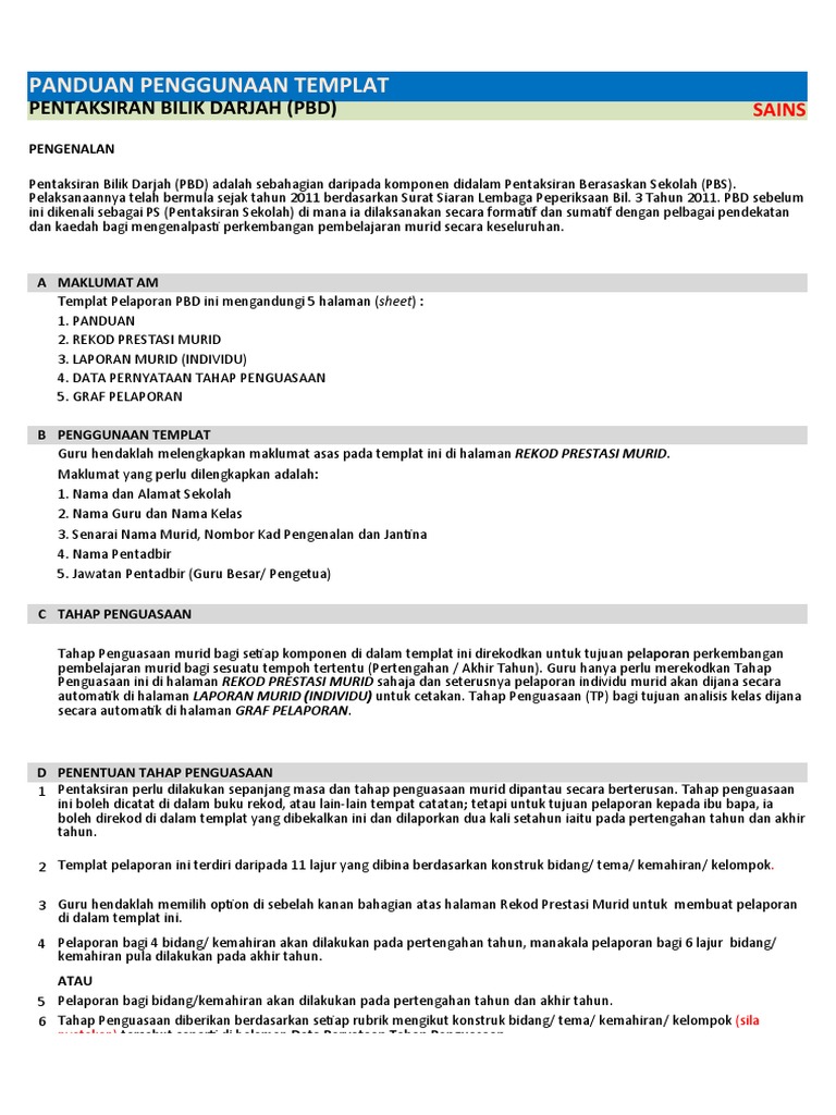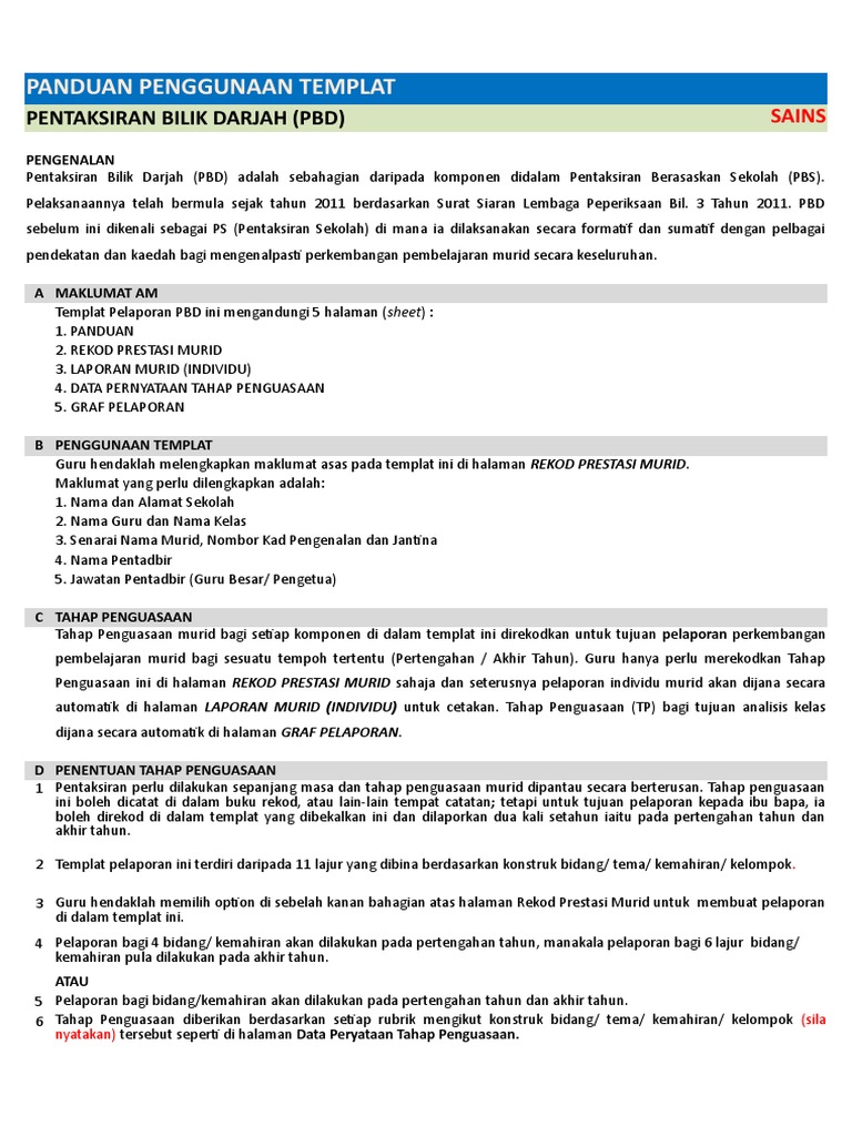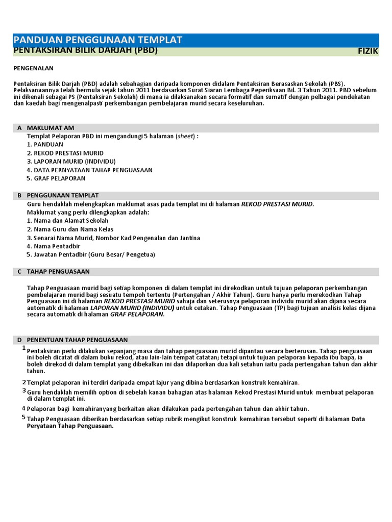 Himpunan Templat Pelaporan Pentaksiran Bilik Darjah Pbd Tahun 2